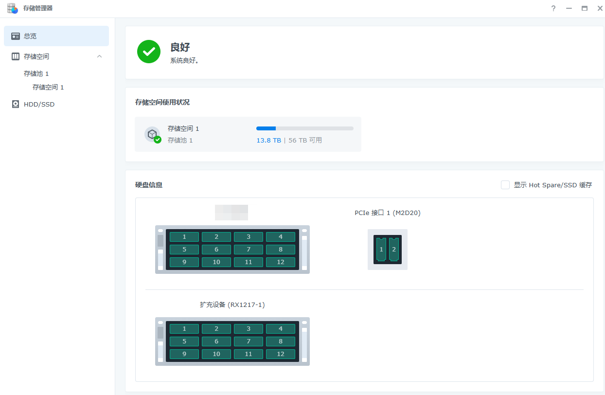 如果使用了拓展设备的群晖设备,光通过以上方法只能将主设备的硬盘状态变成良好,拓展机的硬盘状态不会改变,因此还需要通过以下方法解决拓展设备的硬盘兼容性问题: